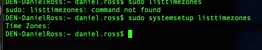 sudo systemsetup -listtimezones