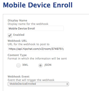That script works to update my HipChat room when executed. However, if I place the URL in Webhooks section of the JSS (see photo) nothing gets sent to the room. I'm wondering if anyone can tell me what I'm doing wrong, or what step I'm missing?