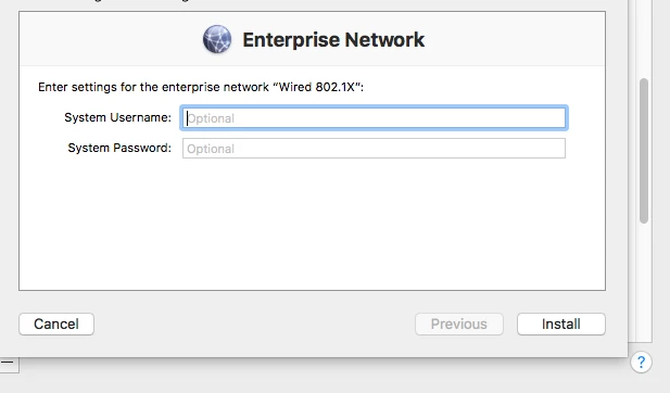 On wired network, I have to manually choose the 802.1X profile from wifi, and then type the machine name + $ to get authenticated. On wifi, I just cannot get authenticated, is said authentication server is not responsing.