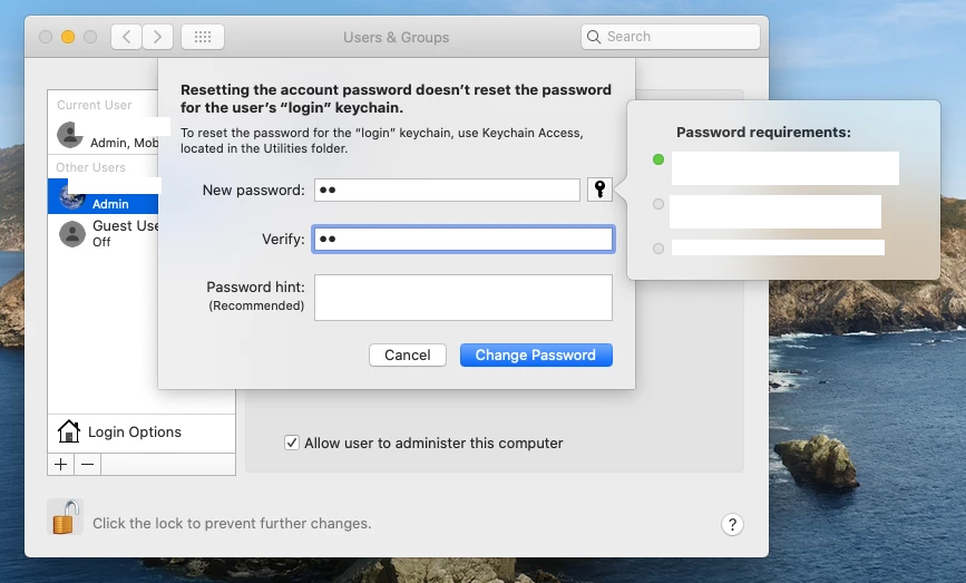AD password requirements prompt