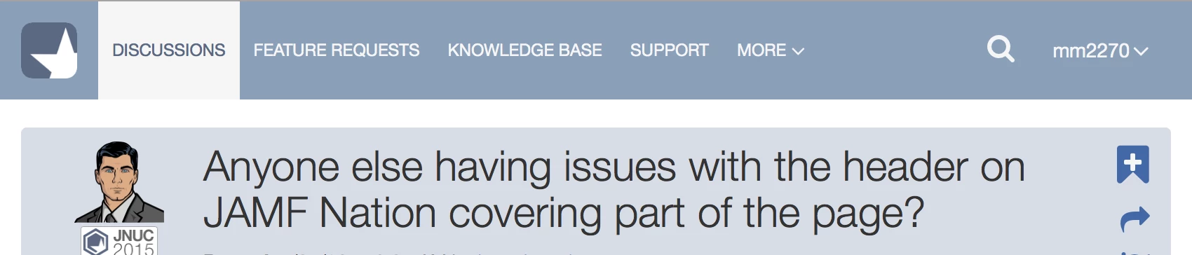 I think it's because of the length of my username, but I was wondering if it's something wrong with my browser or if it's a bug with JAMF Nation.