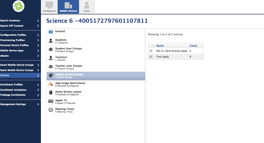 @gil.anspacher "The easiest way is to create a class in JAMF, assign a teacher to the class and a mobile device group to the class."