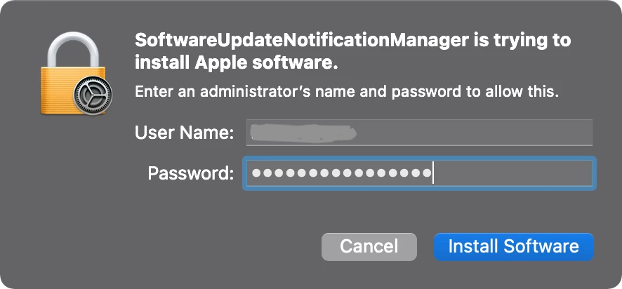 Then I got a pop-up that needed admin authentication for SoftwareUpdate to be allowed to make some change or other. I didn't get a screenshot, sorry. This is as far as I've gotten with trying to update an M1 with a script or policy.