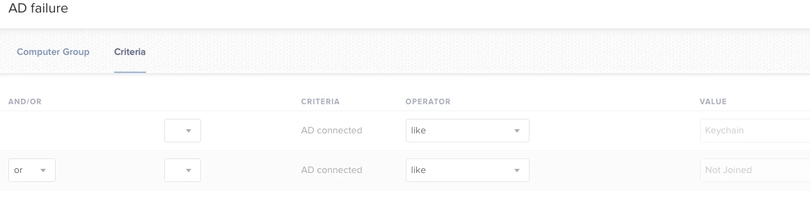 Build a Policy that runs at recurring check in and is scoped to a smart group with the following criteria: