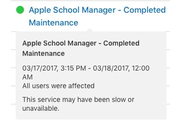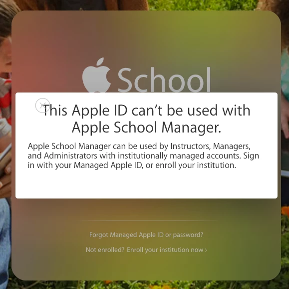 Hi All, Monday Morning, myself and so far at least one other has reported no access to Apple School Manager, with an "This Apple ID cannot be used... " Error