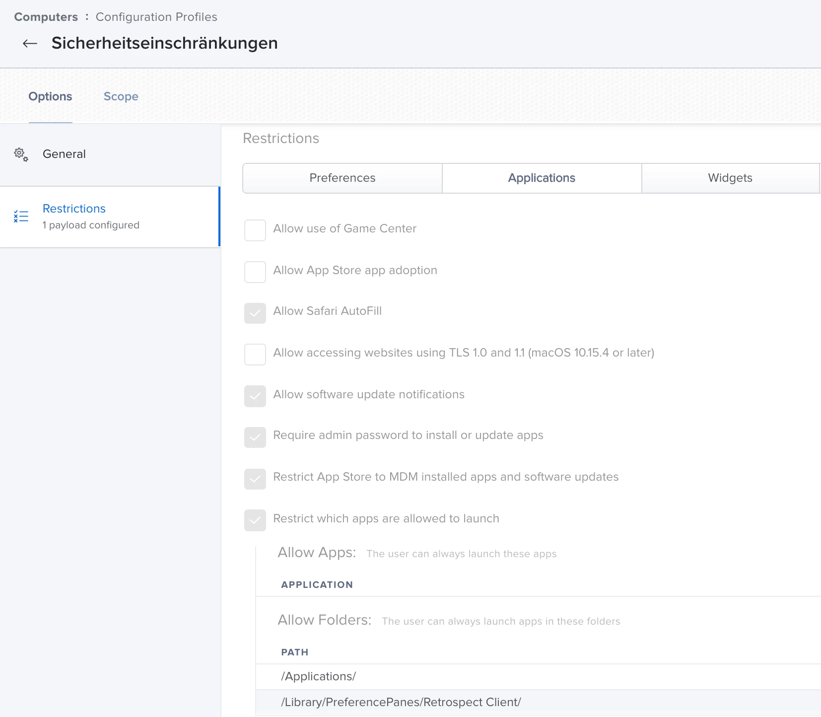 Hi, we have a pretty conservative configuration profile to only allow the user to launch apps from defined paths (for example "/Applications"). This works fine in macOS Catalina but now I have our first M1-Mac (wich comes with Big Sur) and it ignores that payload. I checked in system preferences under profiles that my profile is correctly installed and it is but I can easily download an app and launch it from my downloads-folder (wich should be blocked).