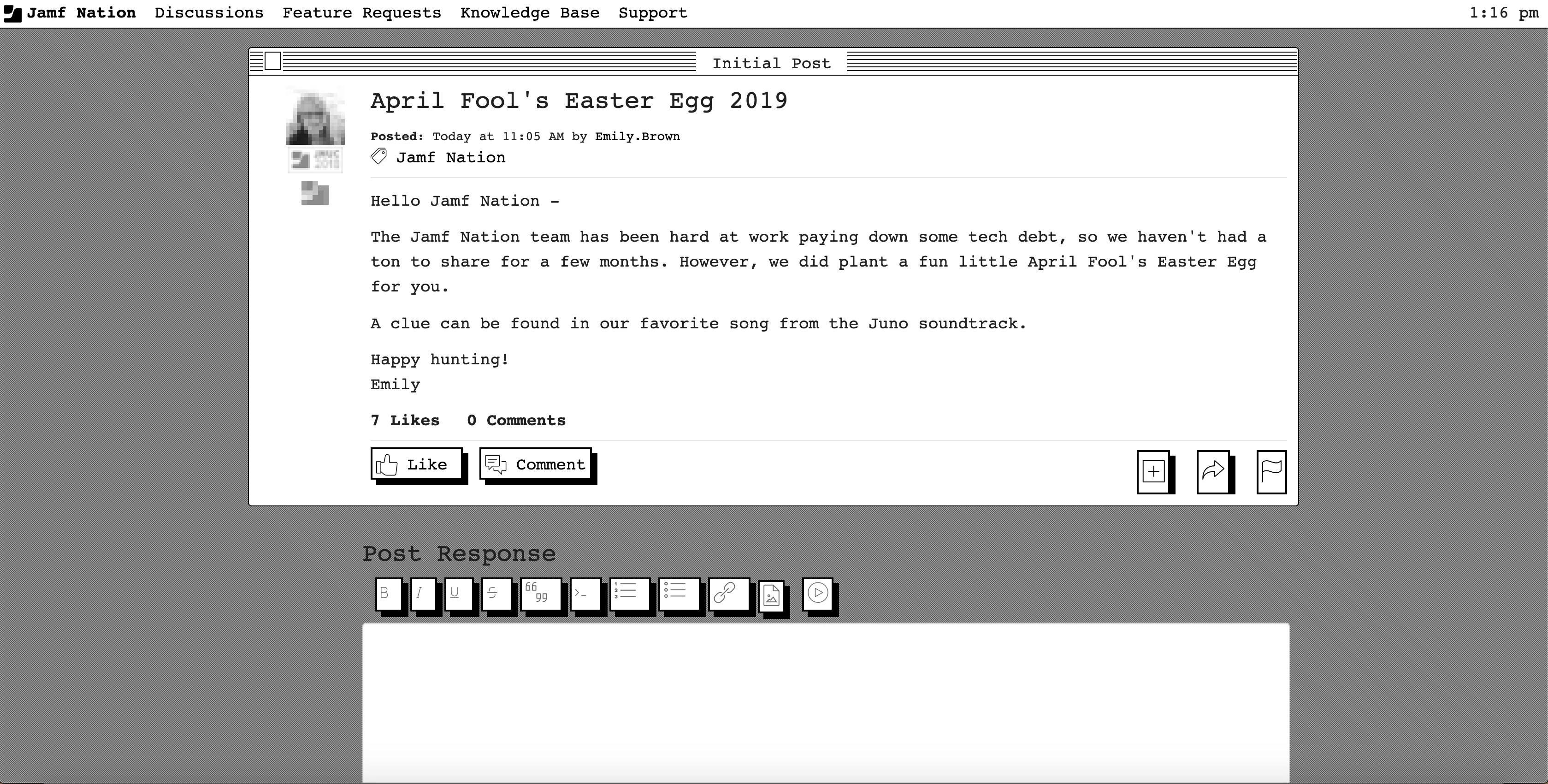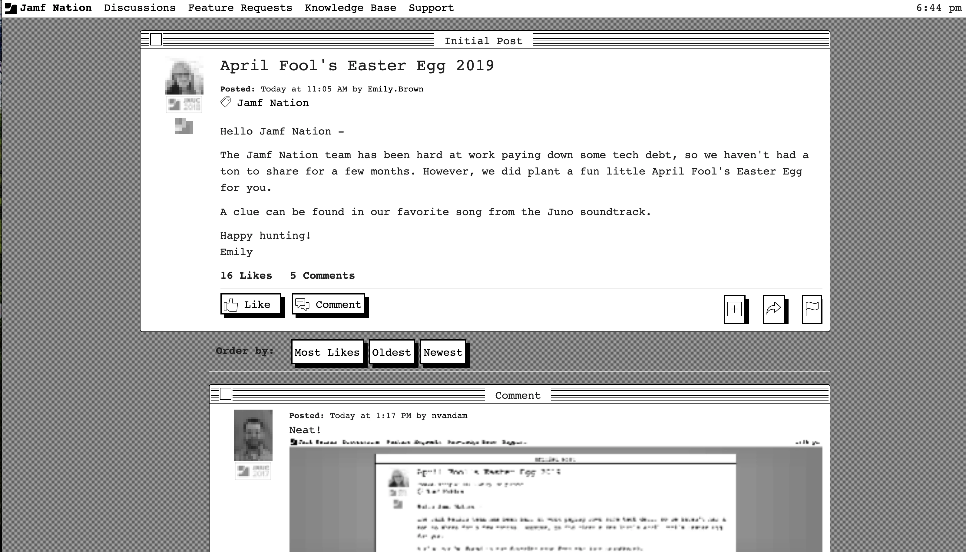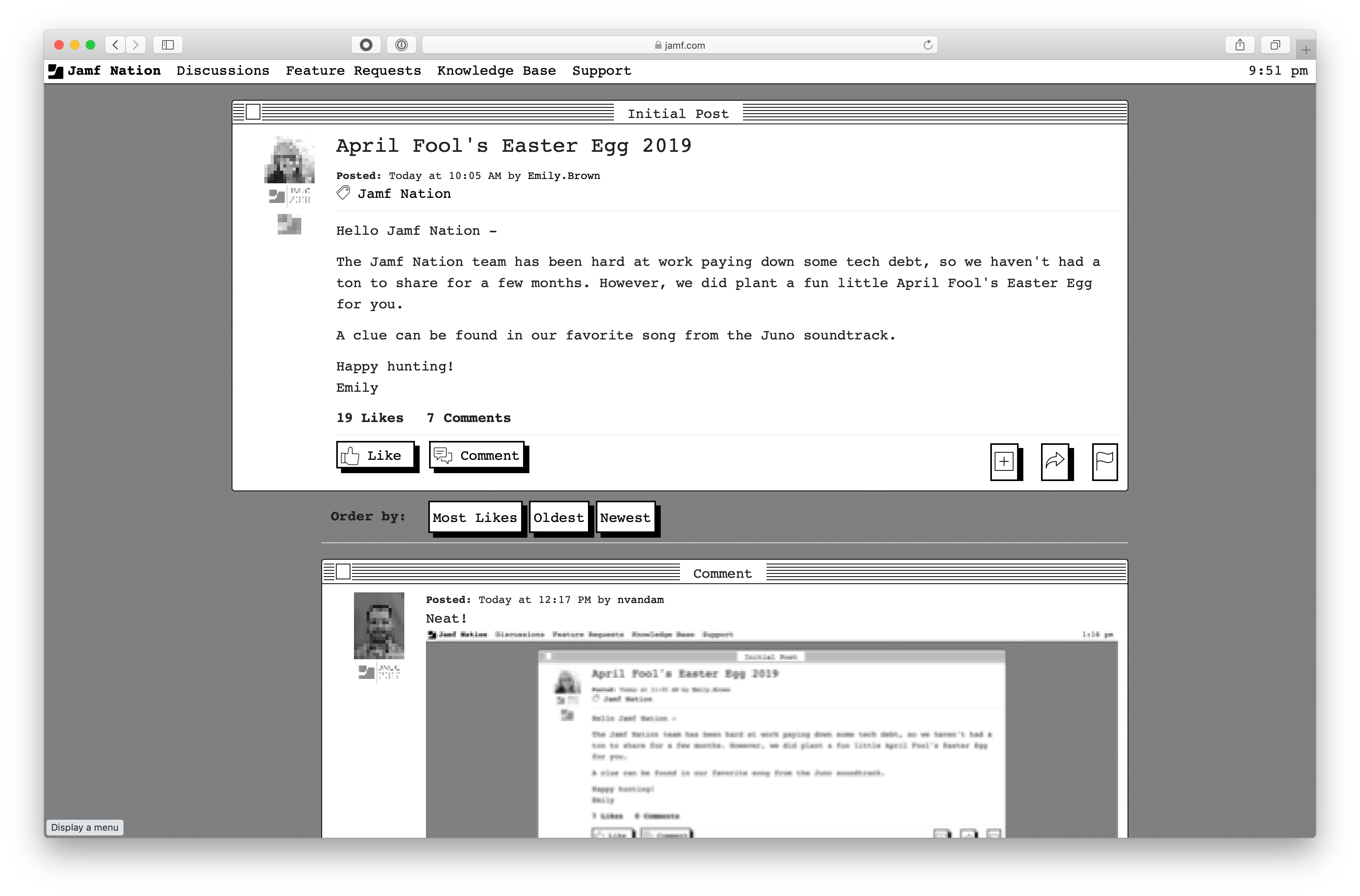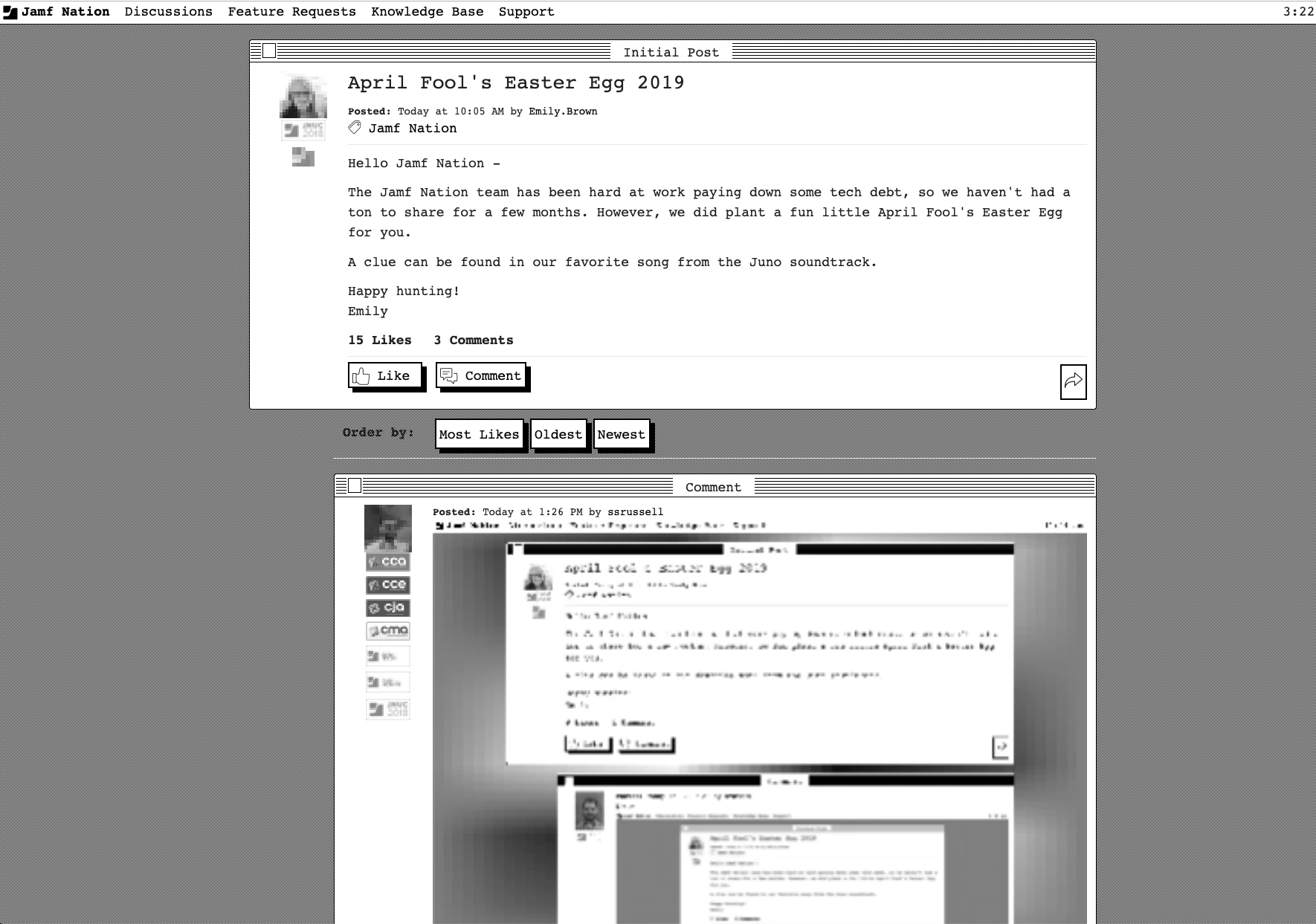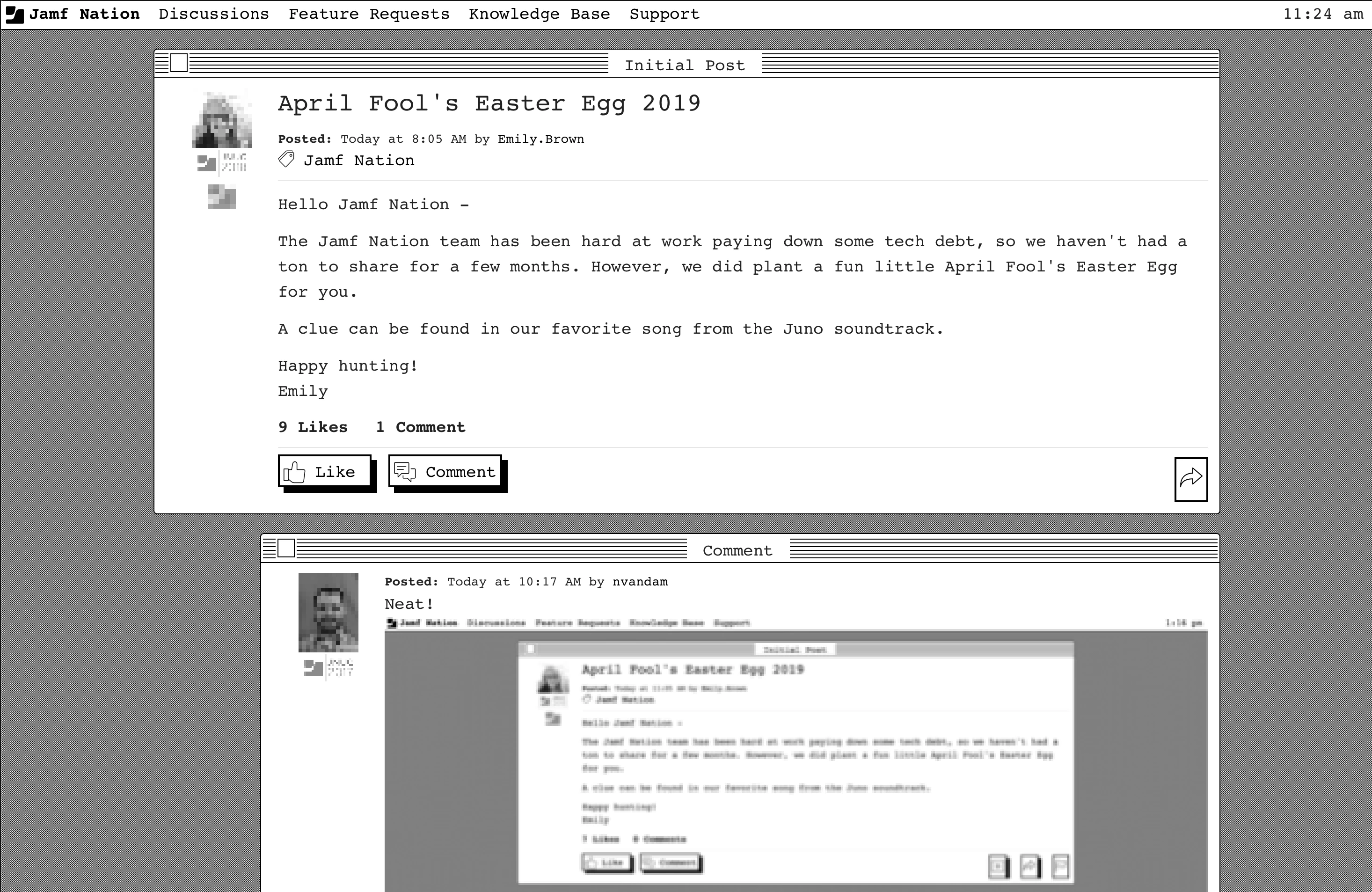 The Jamf Nation team has been hard at work paying down some tech debt, so we haven't had a ton to share for a few months. However, we did plant a fun little April Fool's Easter Egg for you.