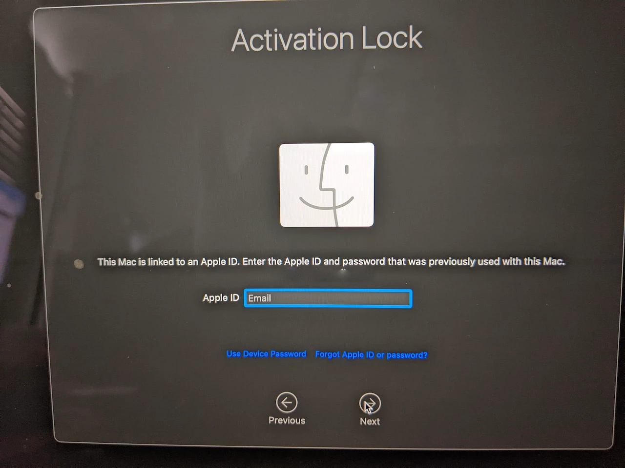 But in this case, I'm testing that hey, I don't know this information. Say the Mac has been handed back to the department and the person who turned this activation lock isn't available.