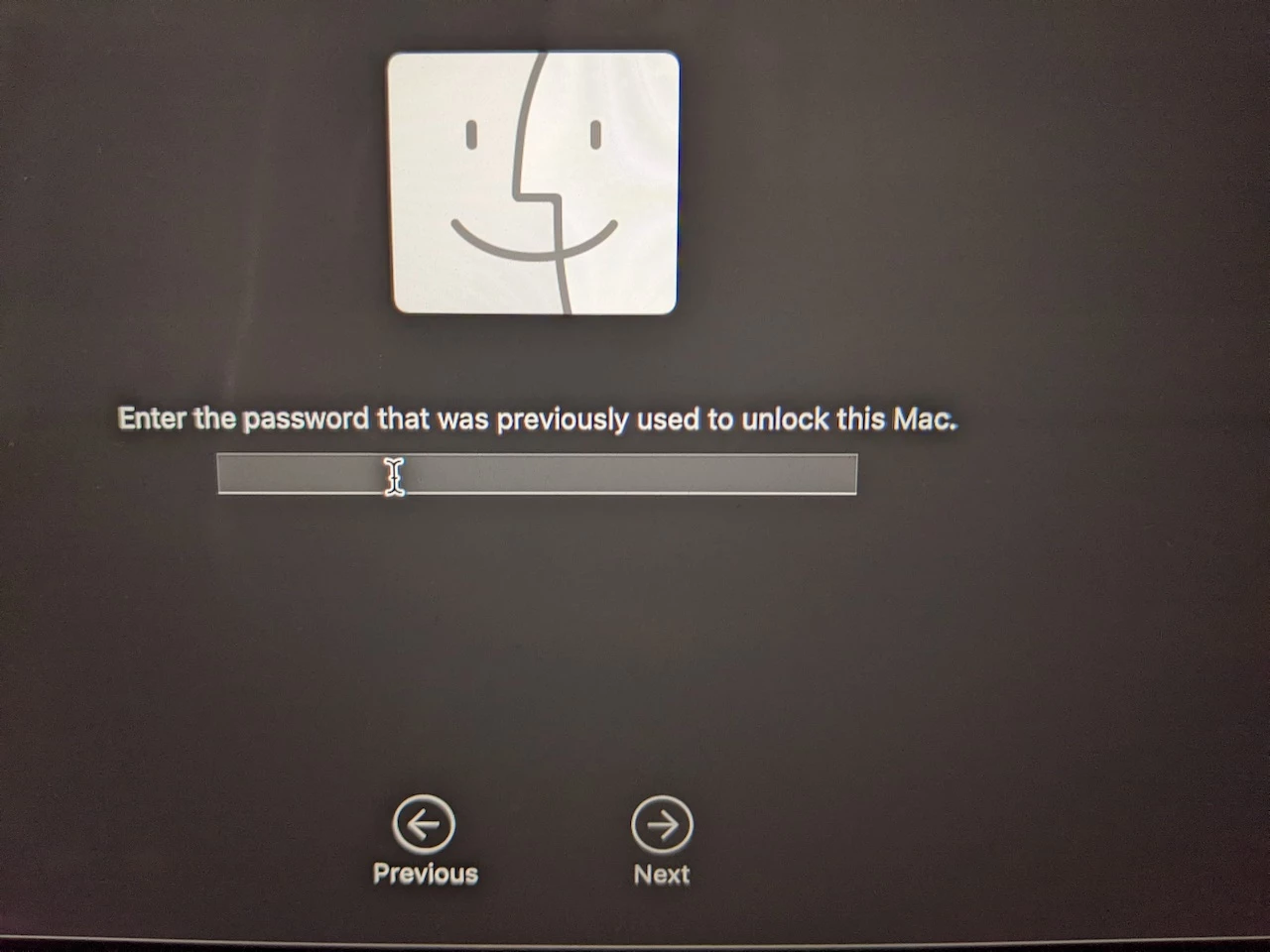 From there, I'm told to Enter the Password that was previously used to unlock this Mac.