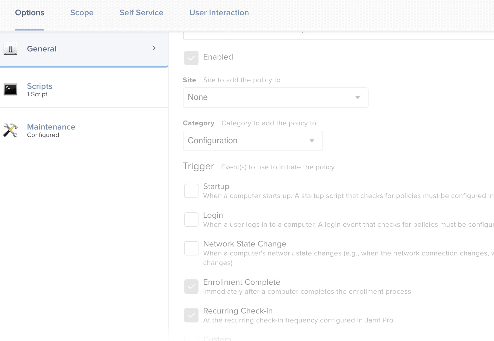 So, I have a test area at my office with lots of machines, we have a smart group for them. I basically scoped it to that group and excluded all the other machines except the one I am about to enroll. Triggers are check-in and enrollment. I was checking the policy logs of the machine in question and saw that it isn't executing the policy at all.