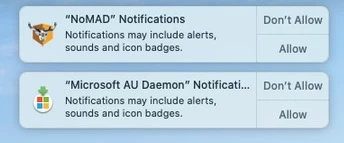 Please see the attached image of examples of this for Microsoft AU Daemon and NoMAD, appearing immediately upon the first login.