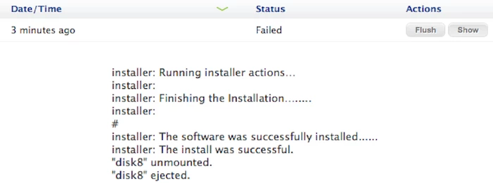 @dderusha @chad.fox, the likely reason that the JSS is reporting it failed is that the policy's logs of the script output includes the word Error at some point. The script hasn't actually failed, it's just that the word is present in the script's output in the logs. This was something that Casper 9.82 is supposed to fix, but earlier versions of Casper will detect and report a failed status because of it.