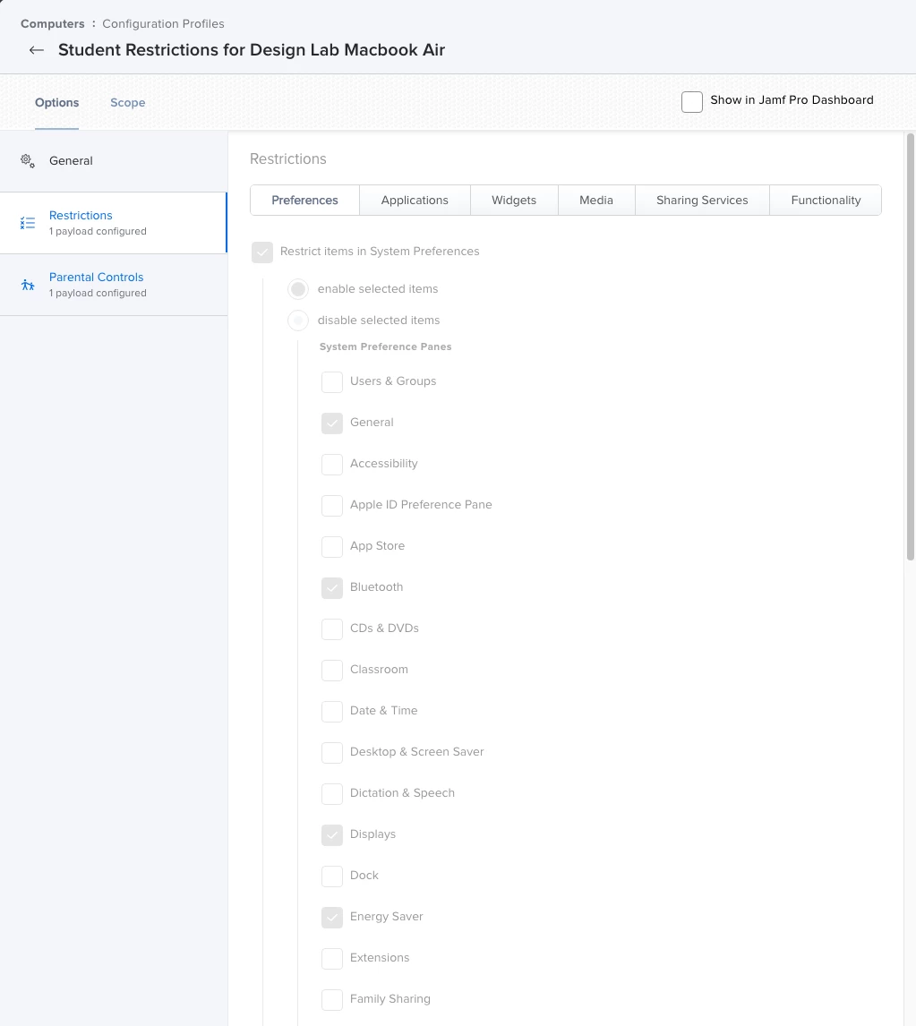 Could this be added in a future Jamf release? We're currently on self-hosted 10.26.0. I imagine we can work around this using the "Disable selected items" option instead, but that would involve restructuring the entire Configuration Profile.