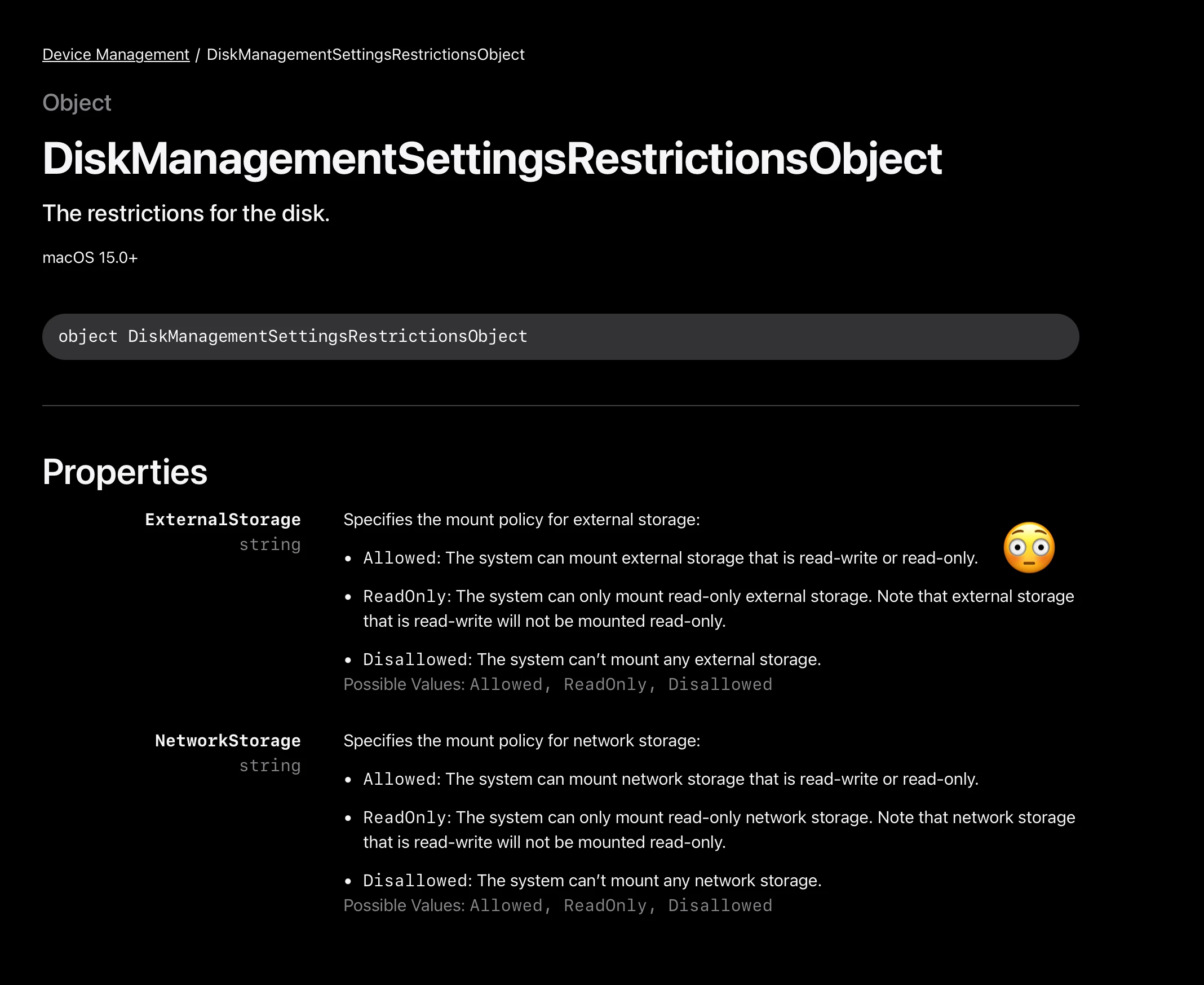 External storage is set to “Read-Only”. Has anyone seen this and figured out how to fix it? I opened a case with Jamf about this. Here’s a screenshot of my blueprint. It’s not complicated. It seems to be very easy to set up.