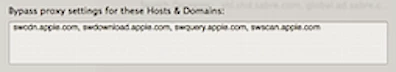 networksetup -setproxybypassdomains "Thunderbolt Ethernet" .local 169.254/16 swscan.apple.com swquery.apple.com swdownload.apple.com swcdn.apple.com*