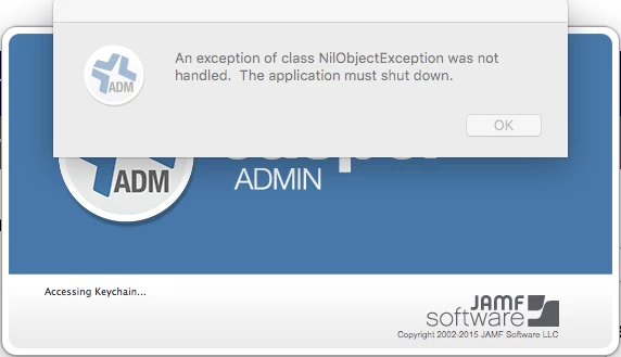 Why are we getting "An exception of class NilObjectException was not handled. The Application must shut down." When opening Casper Admin 9.73 in Mac OS X El Capitan? Casper Admin working fine from other versions of Mac OS.