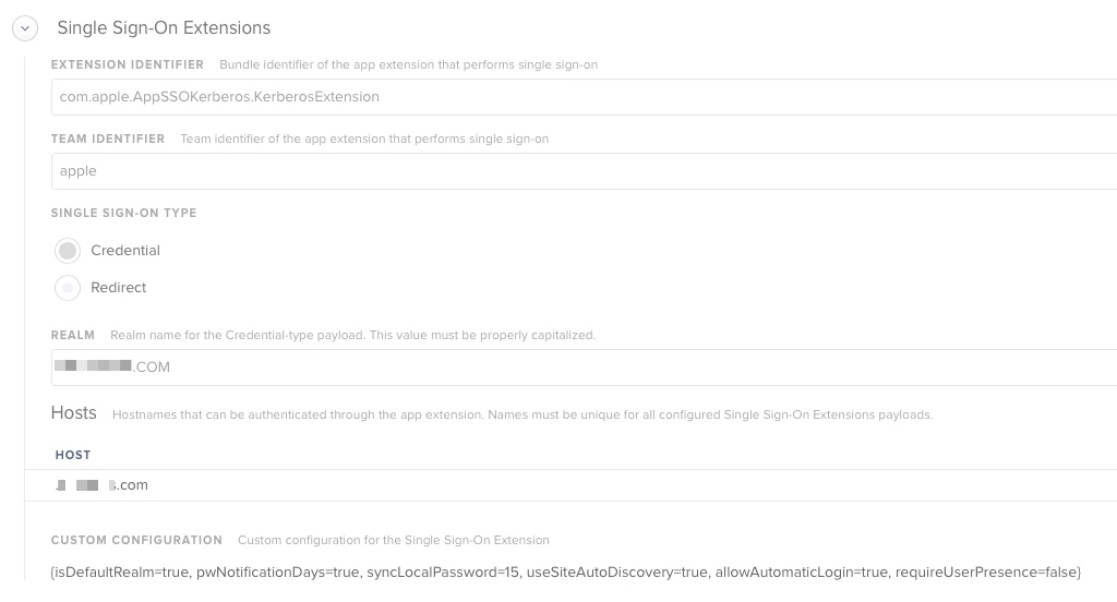 Hello everyone, I'm trying to manually install the SSO mobileconfig file posted by nvandam above, but I keep getting the following message: "The “Single Sign On Extension” payload can only be installed from a user-approved MDM server."