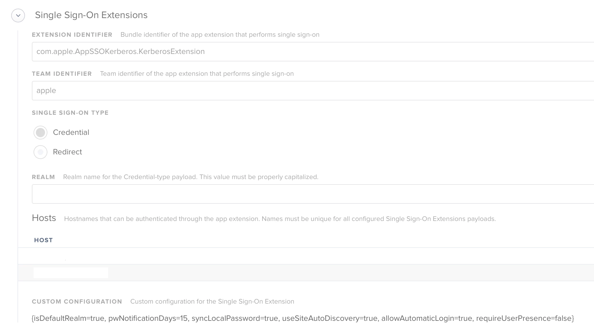 I'm consistently getting "Password doesn't expire" plus when I navigate to internal sites that use SSO Safari just hangs on a blank screen. If I take out the leading "." in hosts, the menubar icon just says "Updating Updating" and Safari forwards to my company's SSO host (I'm assuming this is basically just what would happen without the plugin). Enterprise Connect with as many matching flags as are supported works great. I wondering if maybe I need a redirect style profile that points to some URL like https://sso.mycompany.com/somethingsomething.