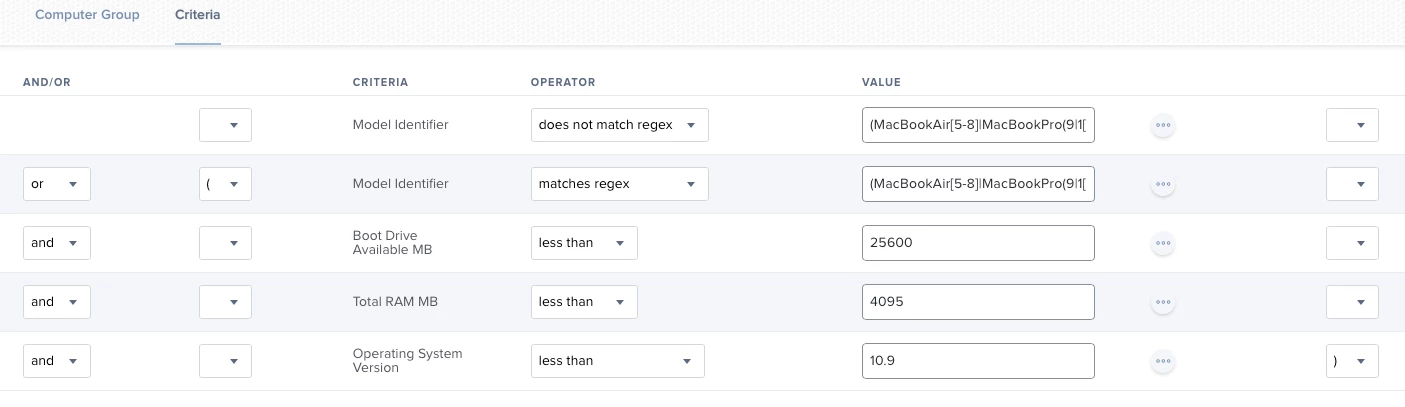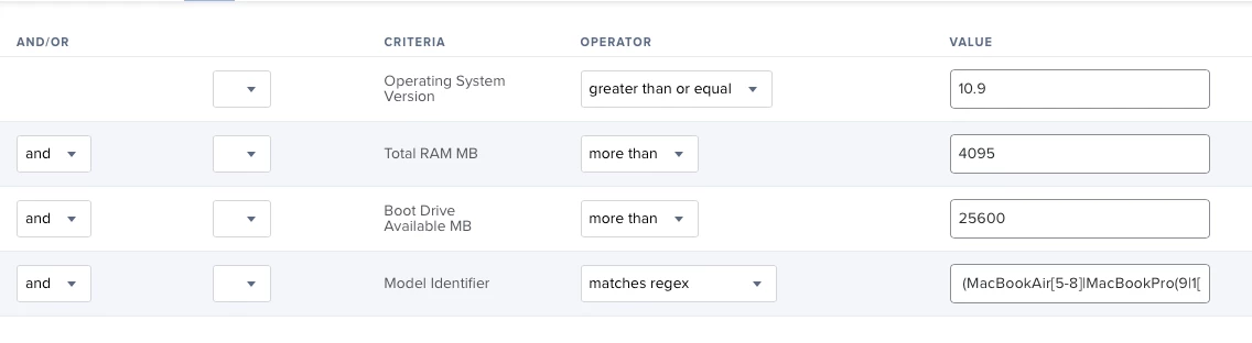 Can you help me to understand that how can we define the value or what is this value represent (10|9|8) or [5-8], or 9|1[0-6] under model identifieras criteria ? such as Macbook Air[5-8]|MacbookPro9|1[0-6]|MacBook(10|9|8)|,.* etc....
