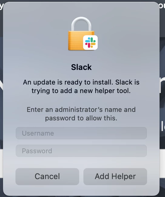 After removing Admin rights from local users, they cannot update some apps. They're getting a popup to enter Administrator rights and click on Add helper. Not sure what this is. Please advise.