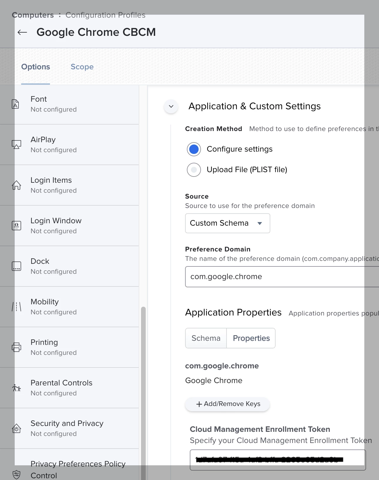 I tried to get Google Chrome CBCM running with a Config profile, and basically, it looks fine.... except that the intended settings (mainly URLs zu open at first start and set Chrome as default browser) fail to apply as soon as Chrome is auto-opened during enrollment via a script: