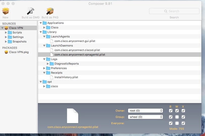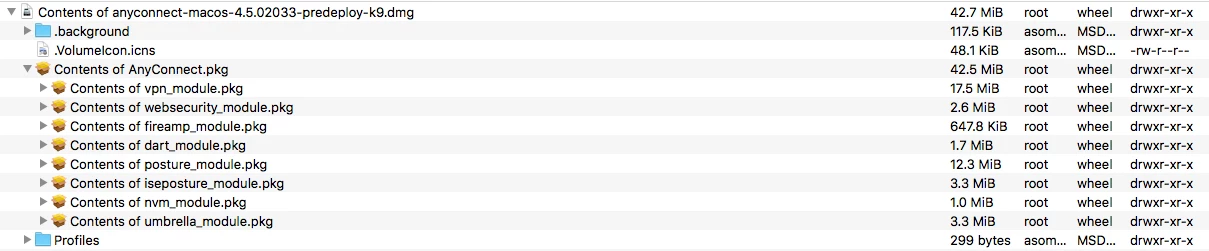 - Open .DMG with Pacifist and navigate to the AnyConnect.pkg