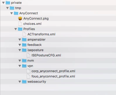 installer -package "/private/tmp/AnyConnect/AnyConnect.pkg" -target / -applyChoiceChangesXML "/private/tmp/AnyConnect/choices.xml"