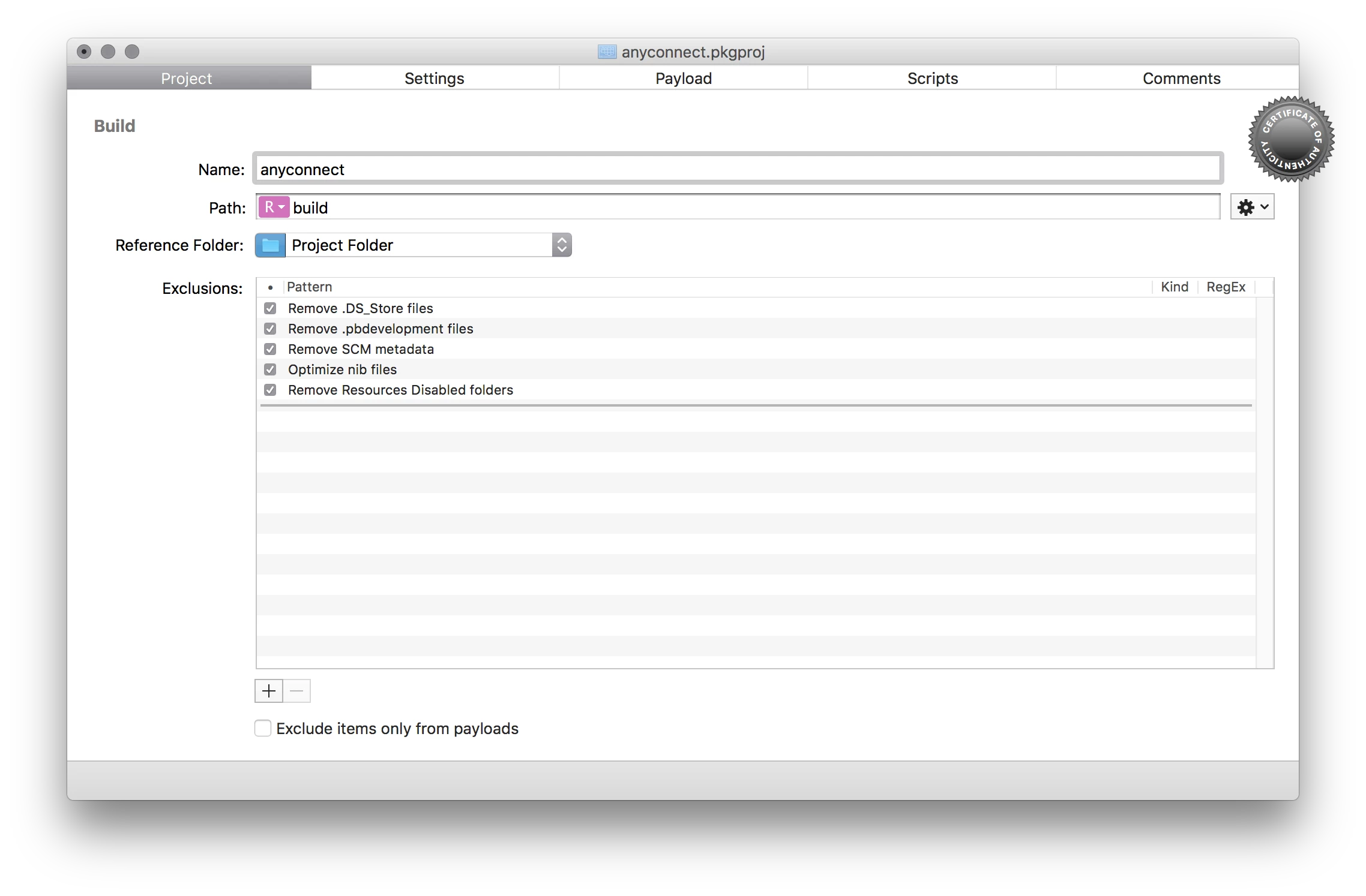 Save the project and then choose to build it. You should now have a package, though unsigned, that will install only the modules you want. If you need to install profiles or other files you can create further packages or simply add to the payload. Packages can apply a cert to your package if you have one or you can sign it after you build it.