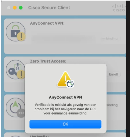 I am running into a problem with 2 colleagues who use a Macbook. Usually when they start the Cisco anyconnect VPN, they log in with their credentials and the anyconnect client remains on a blank page.