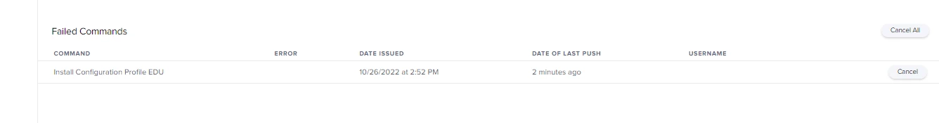 I have had the profile installed on the device, but the moment we wipe the device the profile will not reinstall. I have checked the Inventory Profiles / Mangement Configuration Profiles / and Management Groups - Smart and static. I have insured all the profiles are setup the same way. same groups, etc.