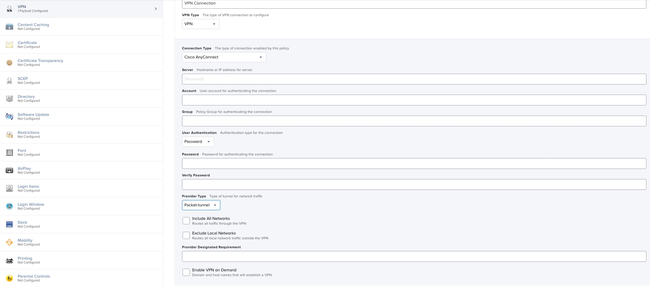 In the latest versions of Jamf Pro I am seeing several new Connection Types available in the VPN option of macOS Configuration Profiles (and mobile too).