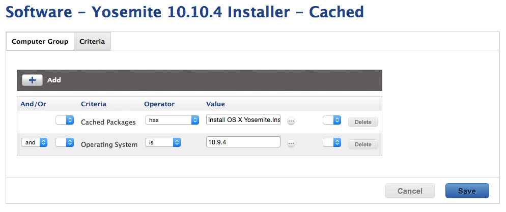 I am caching the InstallESD using a smart group that targets Mavericks users, then setting a Self Service policy to install cached. I want to set a smart group that not only looks for Mavericks users, but also looks for the install cached package.