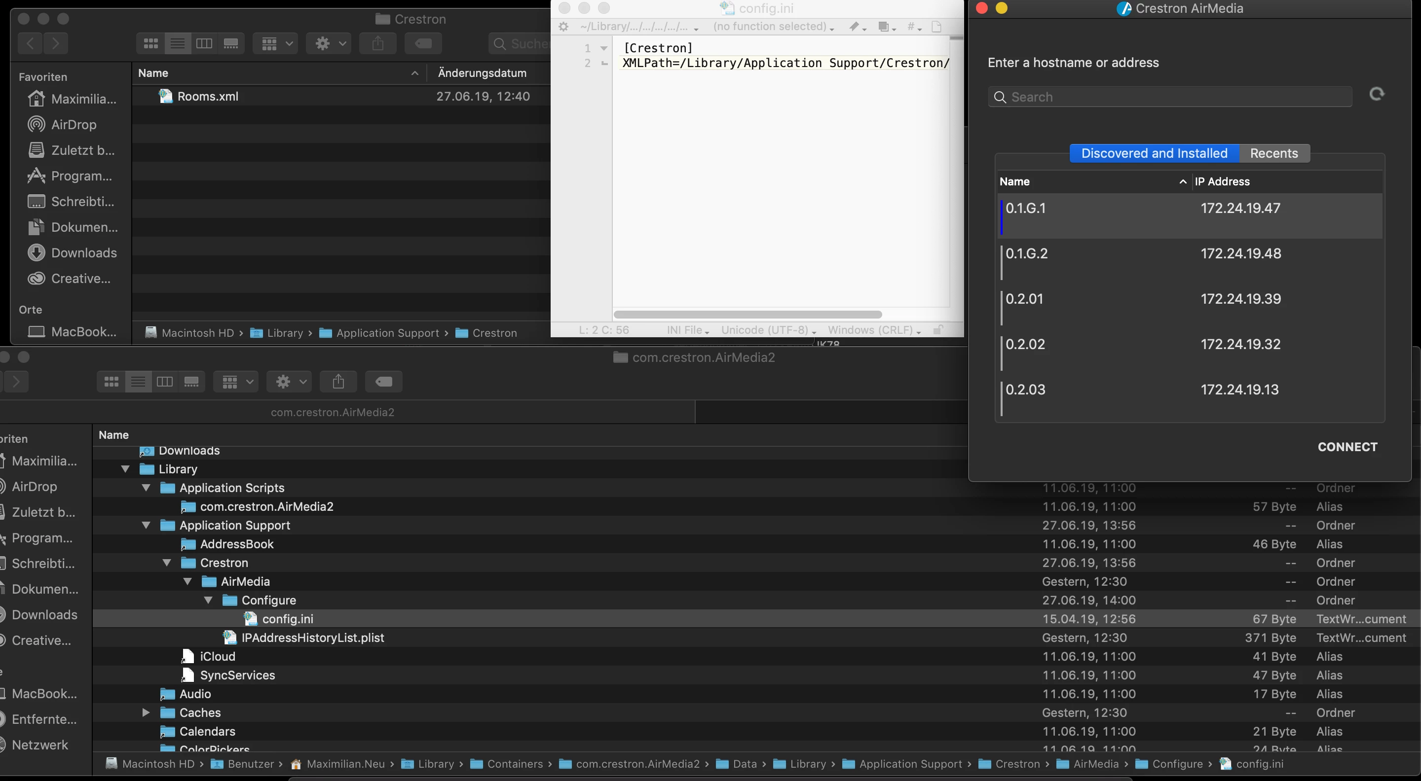 The config.ini file resides in the correct location for AirMedia to read it. The config.ini points to the location of room_list.xml which is pushed locally to the user's Mac. The AirMedia app has full disk access and accessibility in Security & Privacy. I don't see anything blocking AirMedia from trying to use these files.