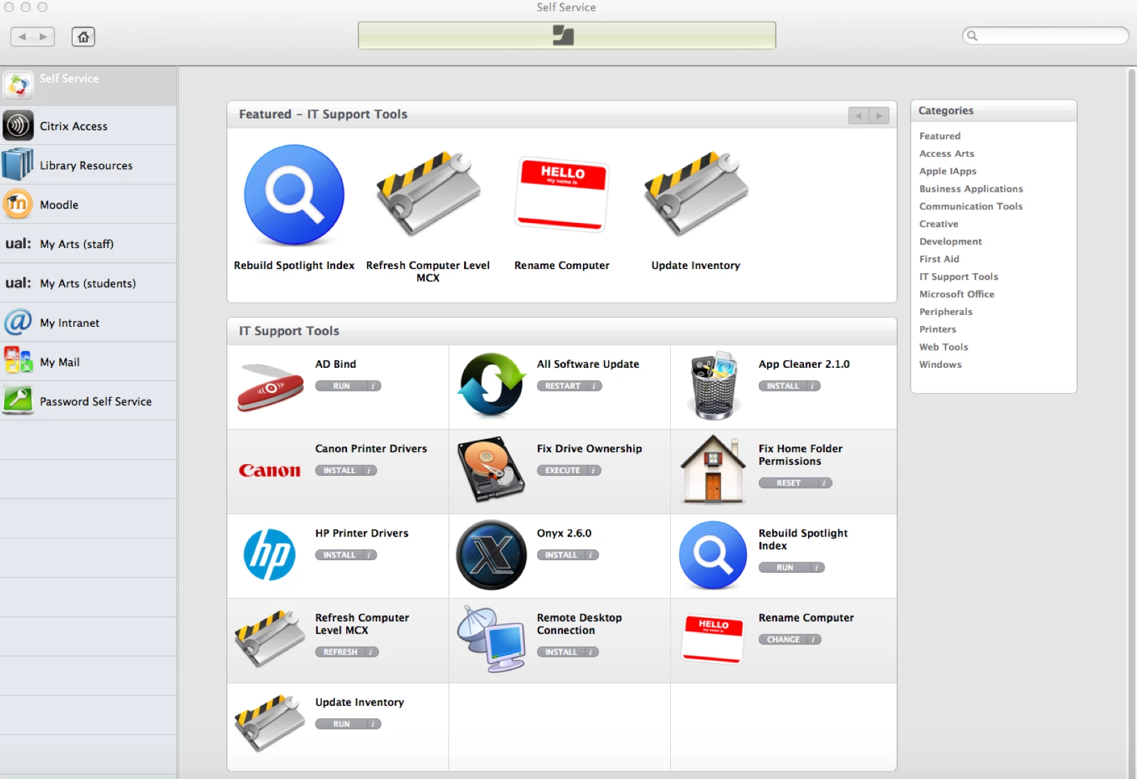 Can any tell me how you can customize the view or look of the "self service" window. Like the screenshot for example with a left hand pane and multiple boxes in the middle