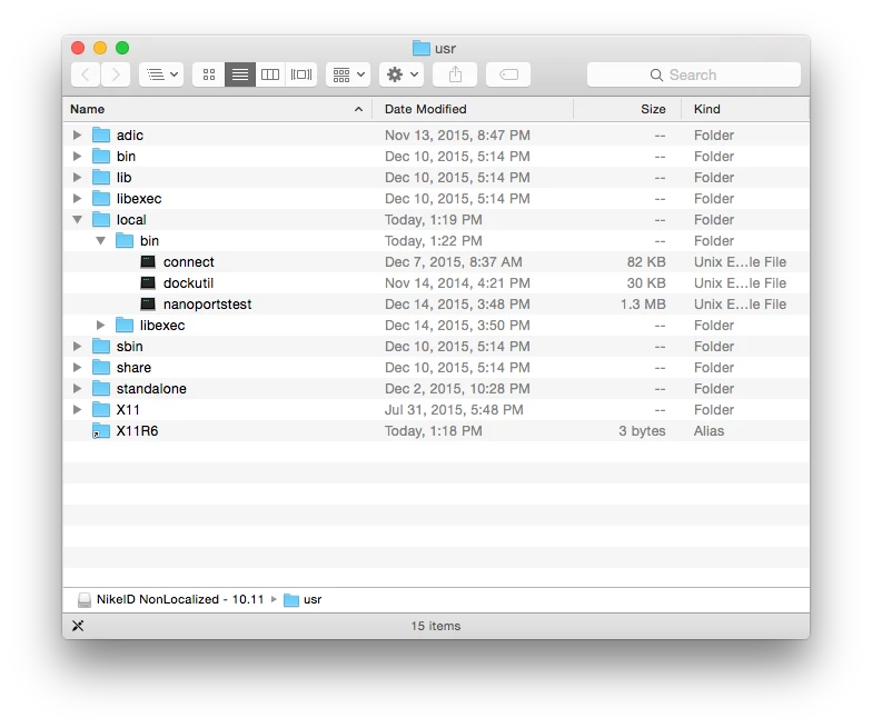 - There's no jamf binary I can find in the completed DMG. I've looked in /usr/local as we're dealing with OS X 10.11 builds. Image attached. Clearly my other installs DID find their way to this directory.