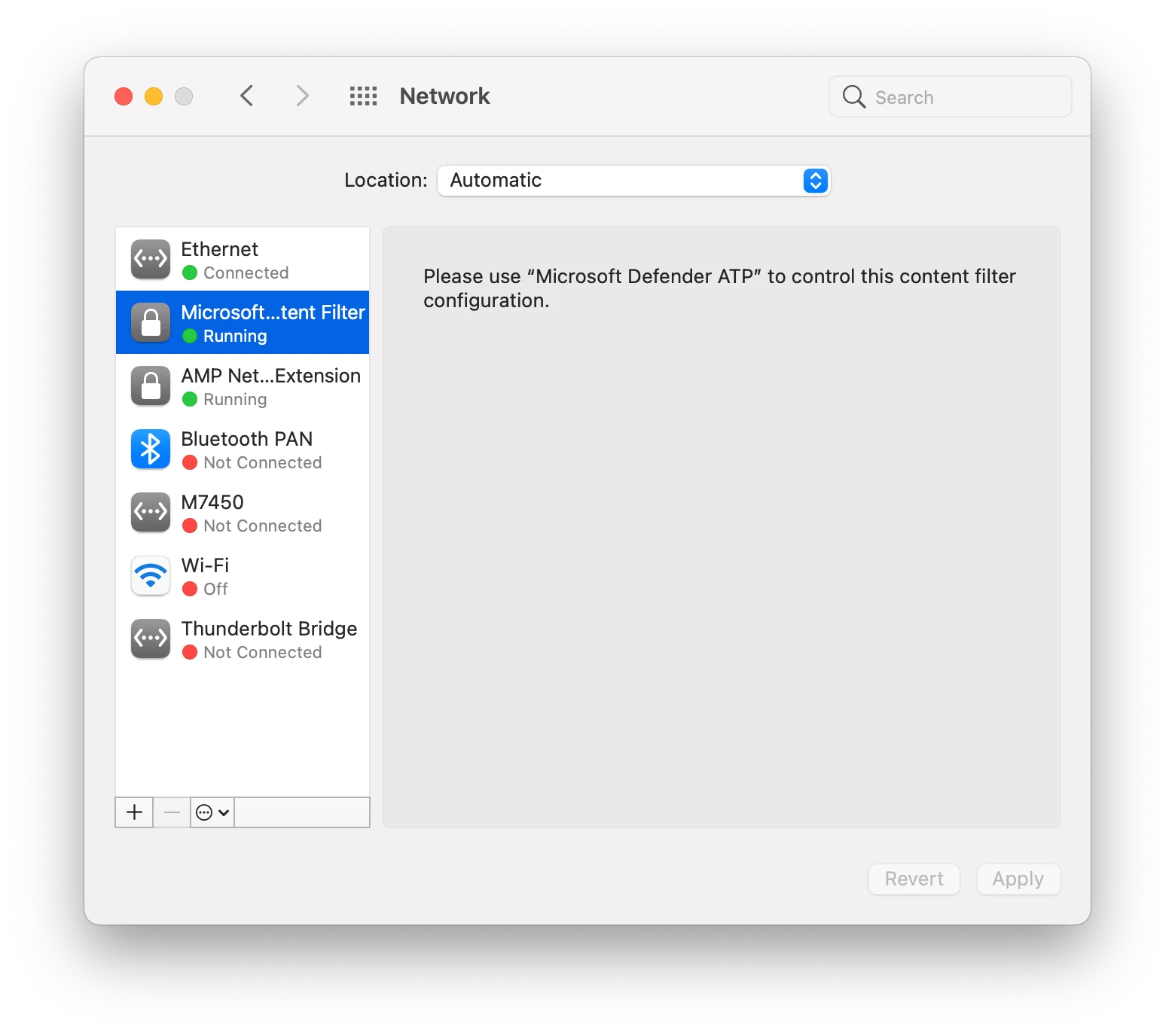I'm doing some testing with the new Configuration Profile and on Big Sur it's working fine. However on Catalina machines, if I look in System Preferences > Network the "Microsoft Defender ATP Content Filter" is "Not Running"