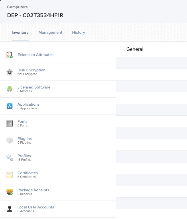 In testing, even though the Mac is checking in it is not pulling application, package receipts etc into jamf pro. Also the machine name isn't DEP - (Serial number) on the Mac. It supposed to report as L(Serial Number) back to jamf pro. This has always worked up until the Catalina Mac. See image.