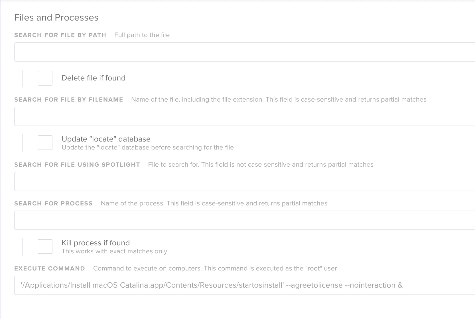 "Install macOS Catalina.app/Contents/Resources/startosinstall' --eraseinstall --agreetolicense --forcequitapps --newvolumename 'Macintosh HD' --nointeraction &"