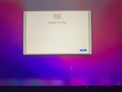 Just shows Register the Mac now with no textbooks or no dropdowns very similar to the 12.3 issue but it is getting the appropriate current user.