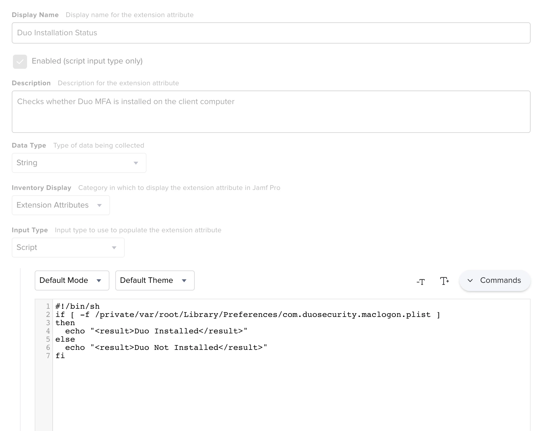 Hi, we roll out Duo 2FA to our fleet, we install it via jamf and it comes up as this plist file com.duosecurity.maclogon.plist. /private/var/root/Library/Preferences/com.duosecurity.maclogon.plist
