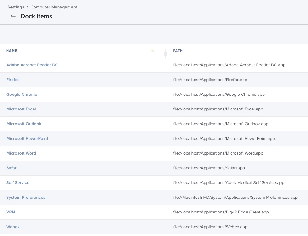 SUPER Newb to Jamf Pro. Wanting to set a default dock for users when they log into their machine. So far in Computer Management- Dock Items I have these set: