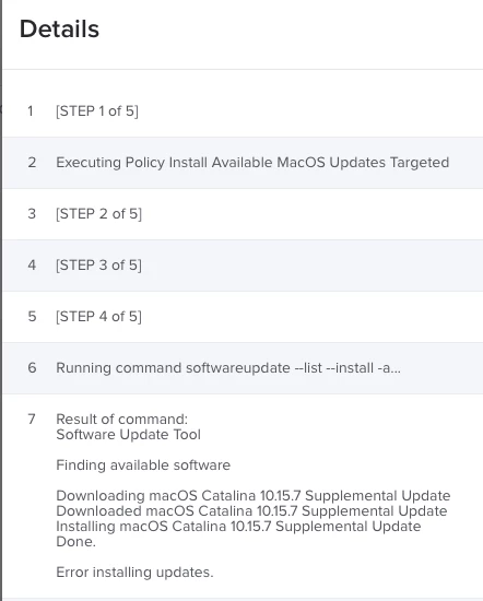 @tomt Same here. Getting tons of errors deploying system updates with downloaded packages and/or by pushing simple, correct "softwareupdate" command - and manual software updates by System Preferences are executing properly