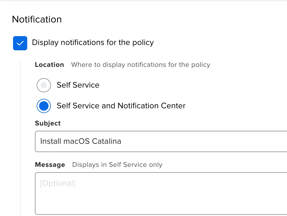 I'd also recommend "Include the policy in the Featured category" so it is easily visible when your Self Service is opened.
