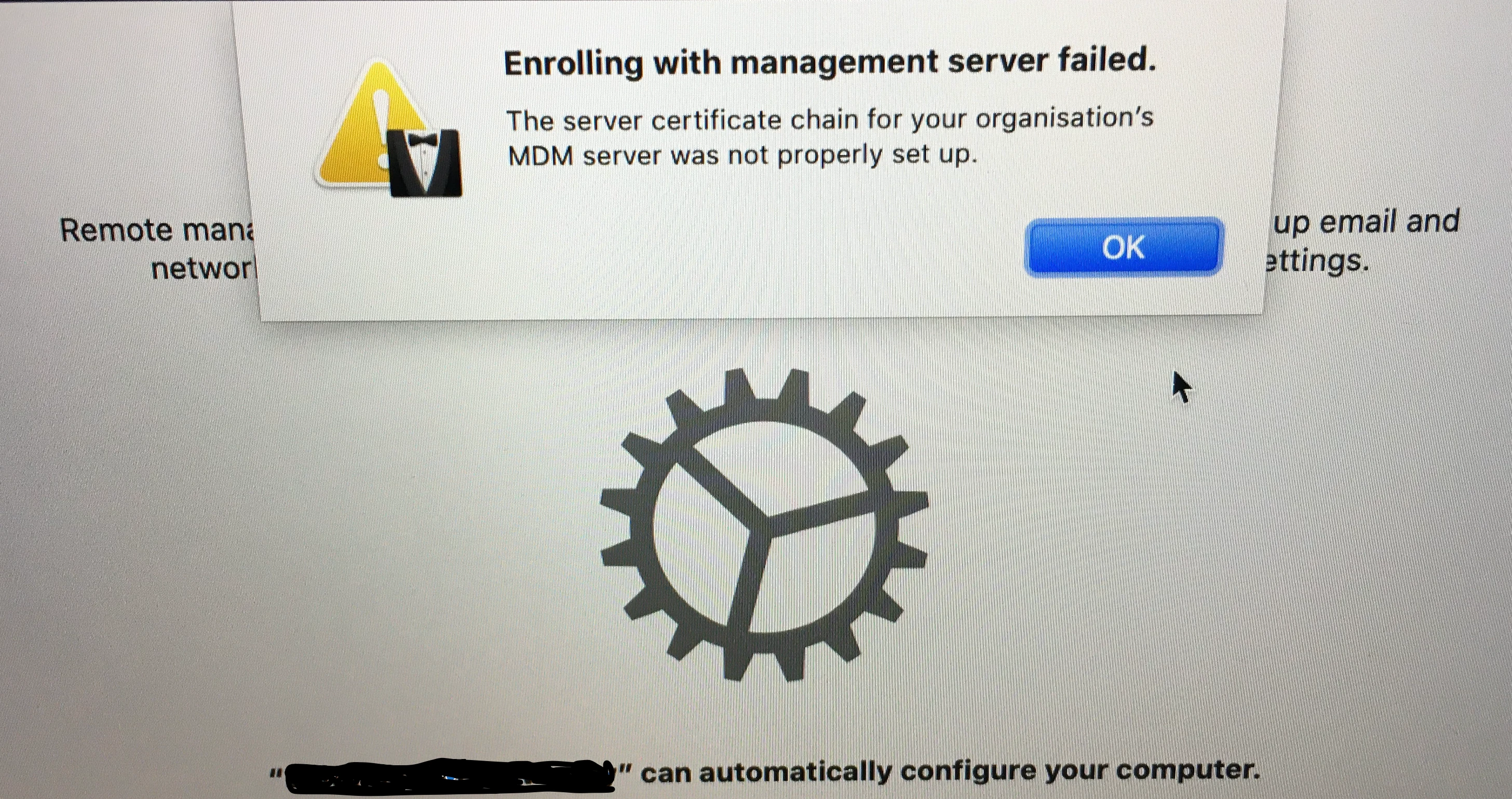We migrated our JSS servers to Azure but are now having issues when configuring the Mac using DEP. See pic below of the error when the Remote Management window appears. It tested successfully in our Azure QA environment which is suppose to be a replica of our production environment.