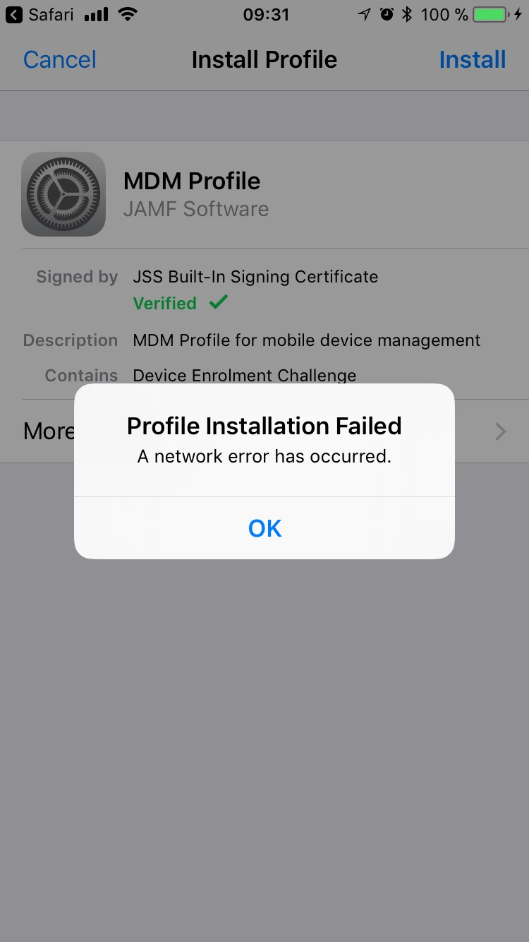 I updated the SSL certificate and I can install the 2 Casper profiles but once it tries to install the MDM one it shows: network error.