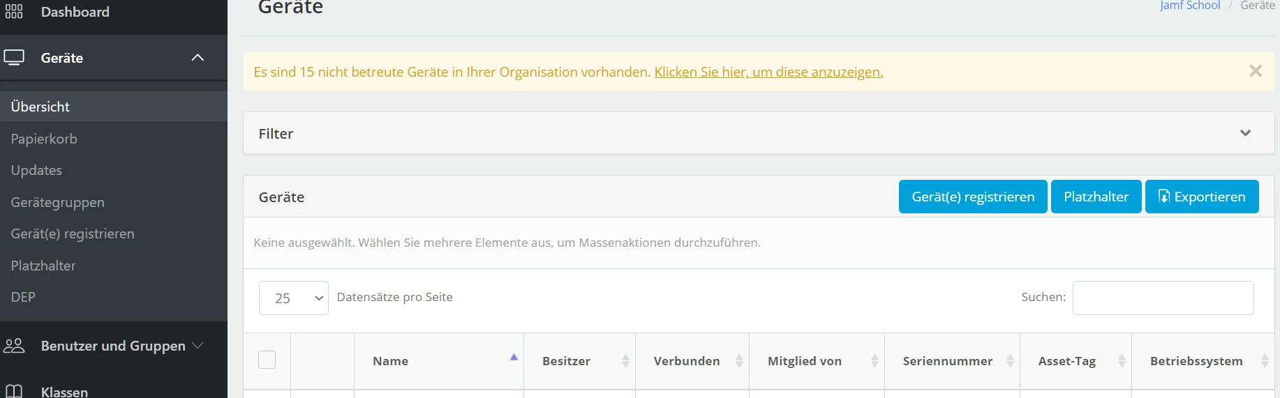 Hey, sind die Geräte "managed" oder "unmanaged"? Klingt für mich nach unmanaged Geräten, hab aber selber kein Jamf School und kann es nur bedingt nachvollziehen.