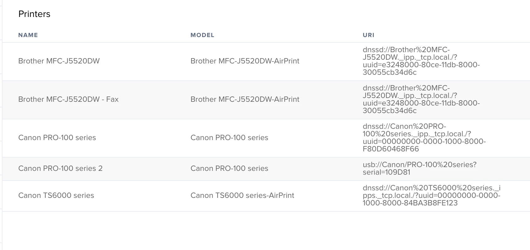 If you're looking to export a specific machine's mapped printers (again, don't think there's a direct way), you could do it via API. Specifically I would look at /JSSResource/computers/id/<id number>/subset/Hardware , under the mapped_printers section.