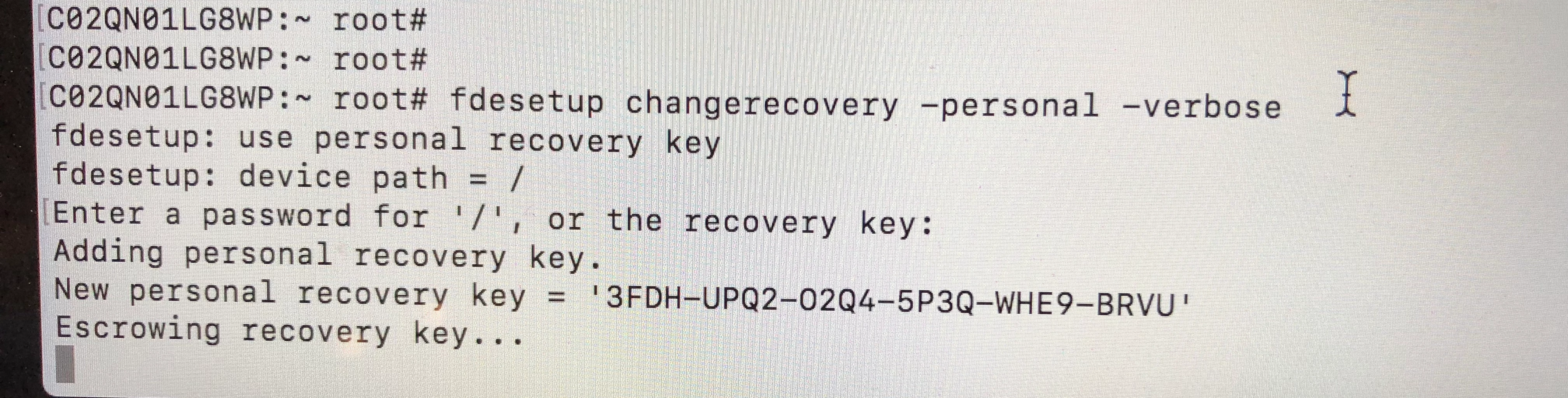 I have tried to do this via the built-in Jamf policy options to issue a new recovery key and also in a scripted fashion like so:
