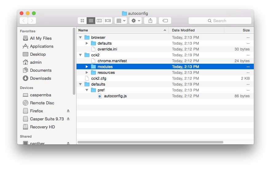 2.) Move the entire cck2 folder into /Applications/Firefox.app/Contents/Resources