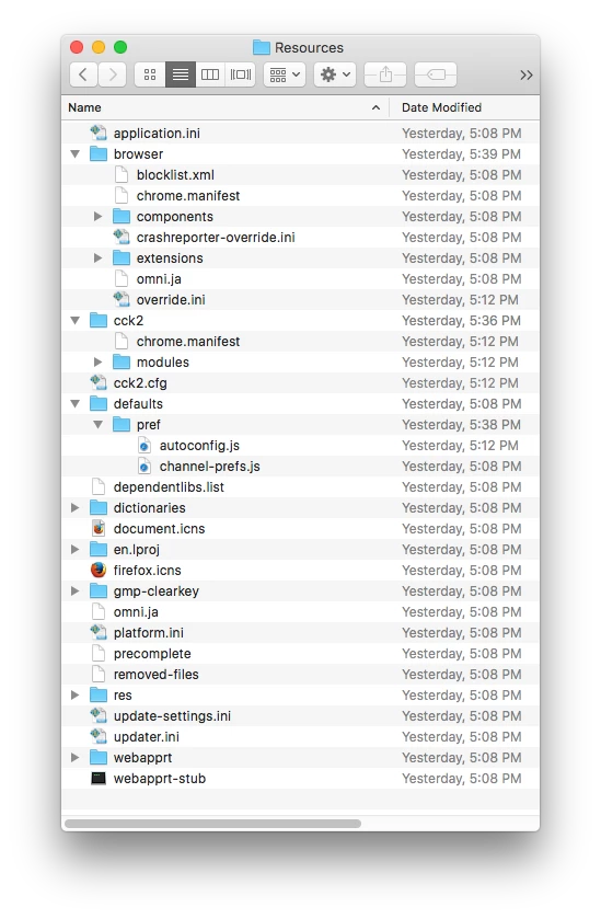 4.) Inside the defaults folder you will see another folder named pref and inside that folder you'll have a file named "autoconfig.js". Move this file into /Applications/Firefox.app/Contents/Resources/defaults/pref